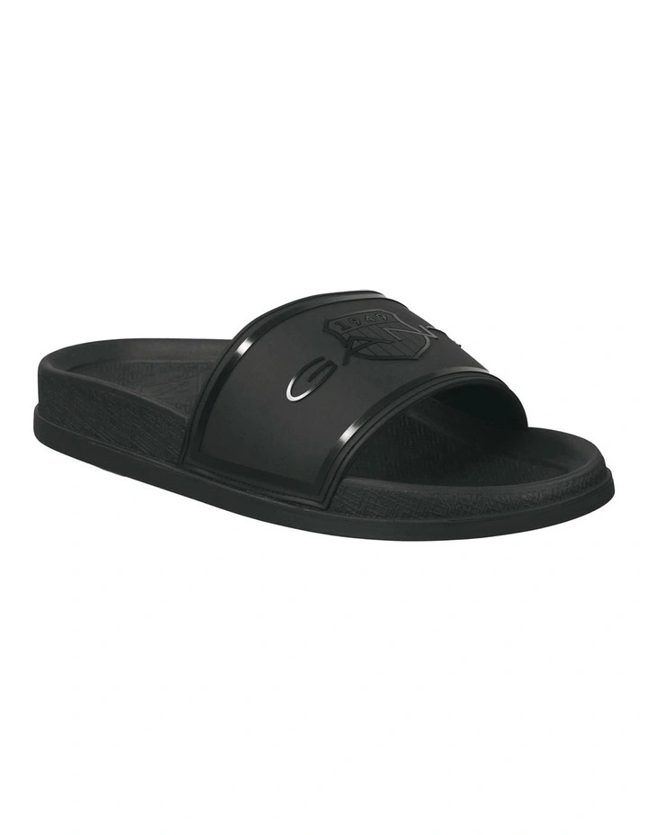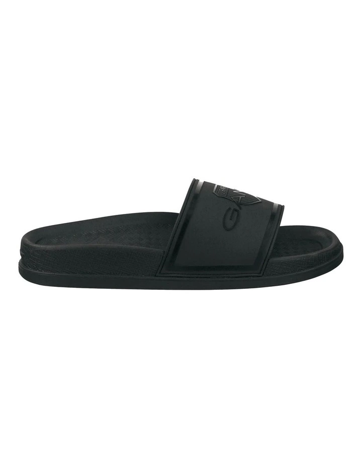 Super-light, comfortable beach slide with a wide rubber bandage. The striking branding gives the sporty look a touch of luxury. With light EVA outsole and a textile lining for great comfort.
