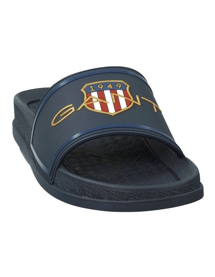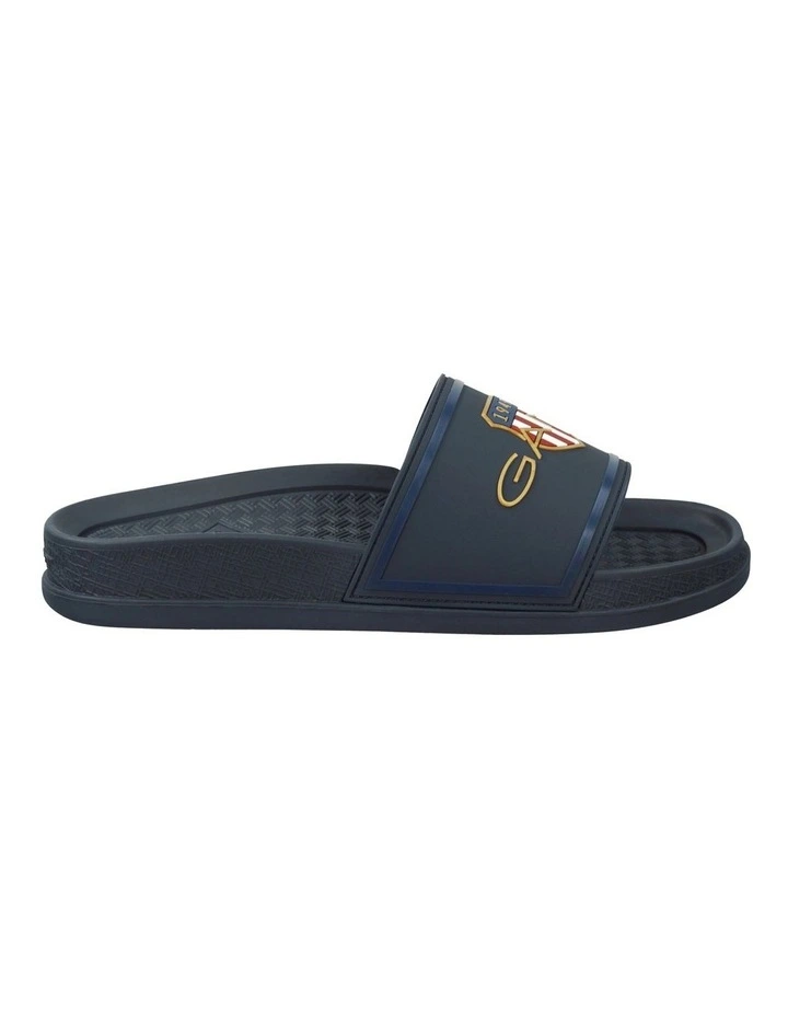 Super-light, comfortable beach slide with a wide rubber bandage. The striking branding gives the sporty look a touch of luxury. With light EVA outsole and a textile lining for great comfort.