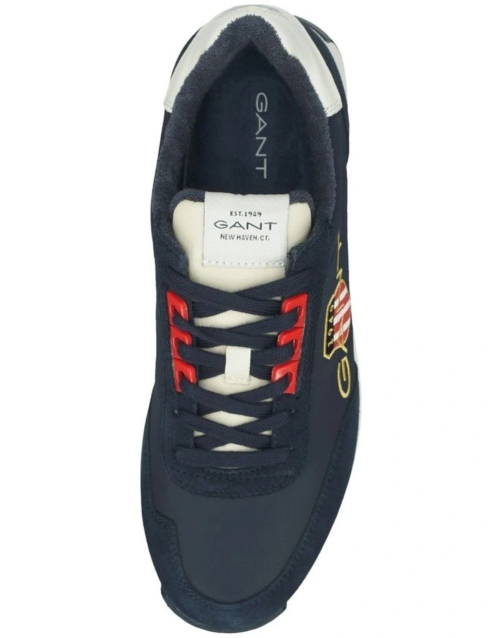 Fashionable sneaker in running style with eye-catching GANT Shield logo. The upper is a combination of high-quality suede and fashionable nylon. With textile lining and an insole made of GANT Re-Foam, a recovery foam made from recycled material. The outsole made of particularly light EVA ensures an easy walking feeling.