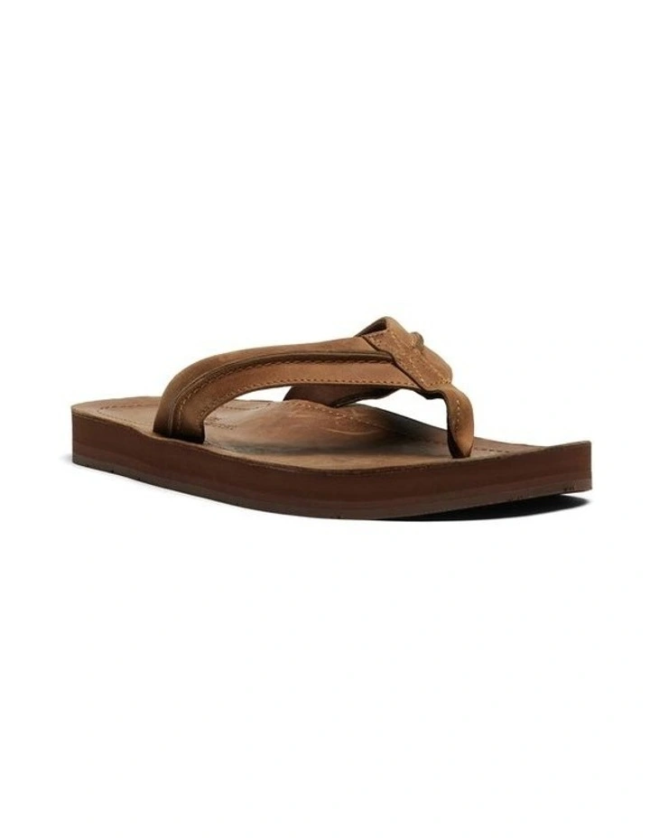 The Piha Jandal upper is made from bovine crazy horse leather with a fabric lining and crazy horse leather foot bed. Under the leather foot bed is a dual density sponge EVA midsole that is contoured for added comfort cemented to a rubber outsole that features the Gunner icon that will take you from Beach to BBQ to Barstool and everything in between.